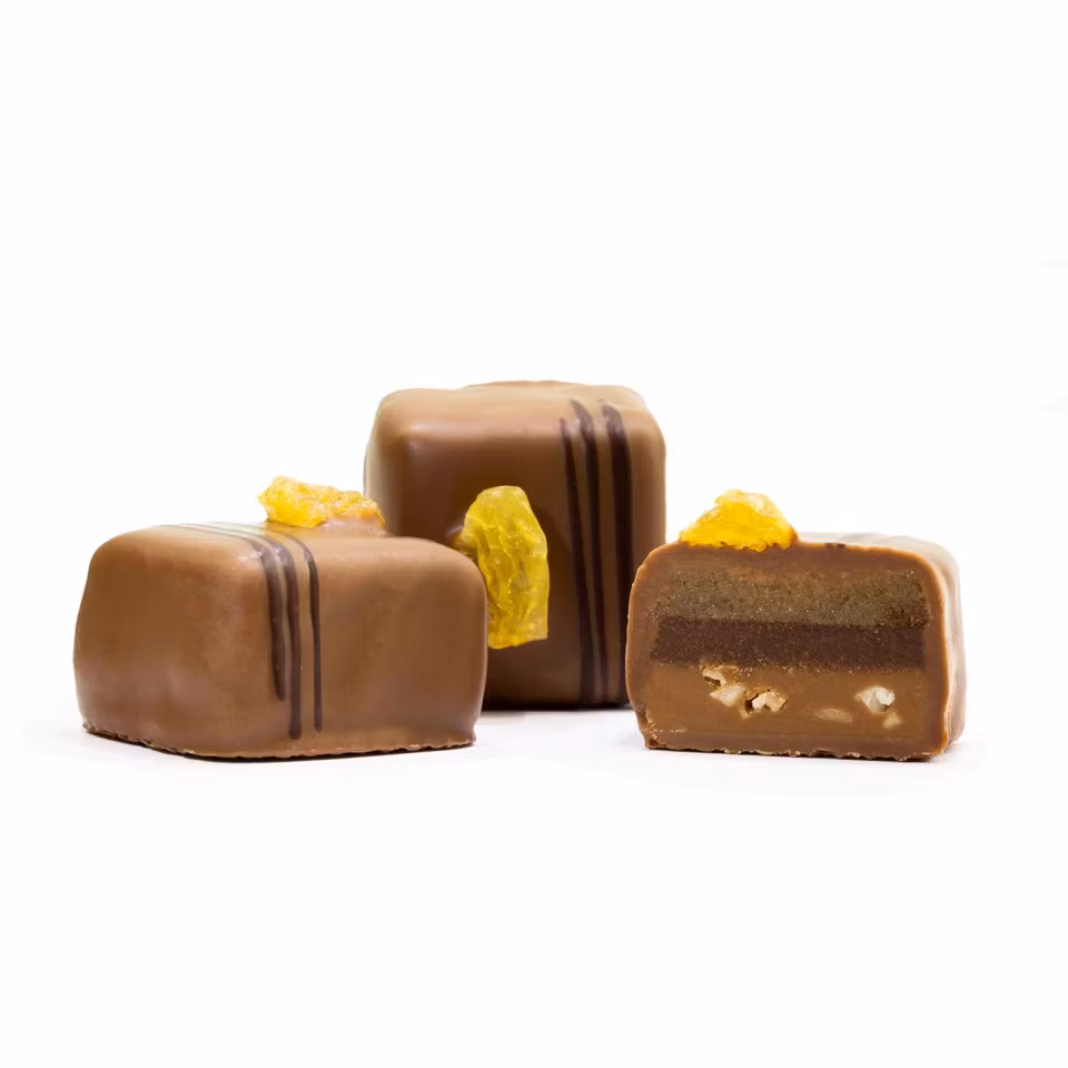 Ingredienser: socker, kakaosmör, kakaomassa, HASSELNÖTTER (10%), MANDLAR, russin (6%) [solrosolja, antioxidant (SVAVELDIOXID)], havredryckspulver (HAVRE), risdryckspulver [ris, HAVRE (betaglukan), solrosolja, salt], kokosmjölkpulver (kokosmjölk, maltodextrin), fuktighetsbevarande medel (sorbitol), rom (2%), glukossirap, invertsocker, emulgeringsmedel (SOJALECITIN). Kan innehålla spår av MJÖLK och andra NÖTTER.