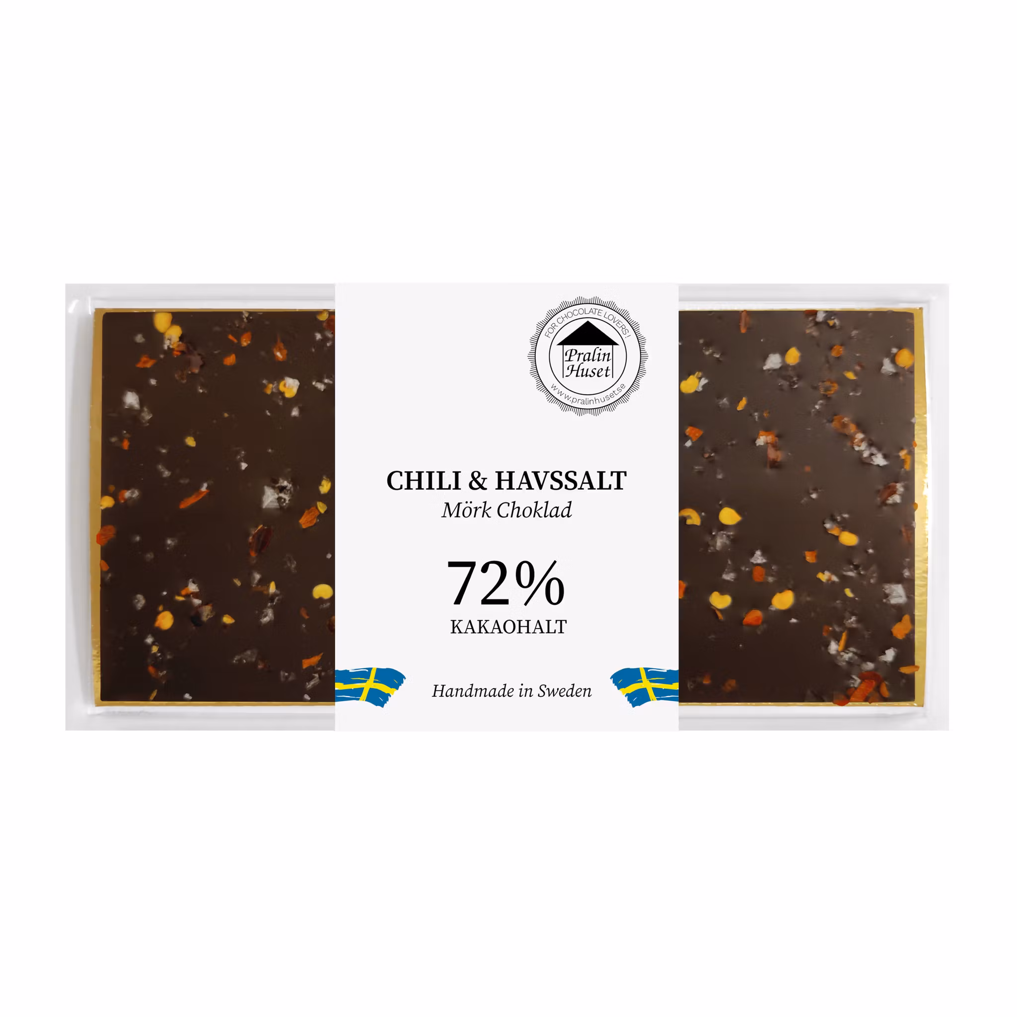 En kartong innehåller 10st chokladkakor. Pralinhusets egna 100 grams chokladkaka i mörk choklad.