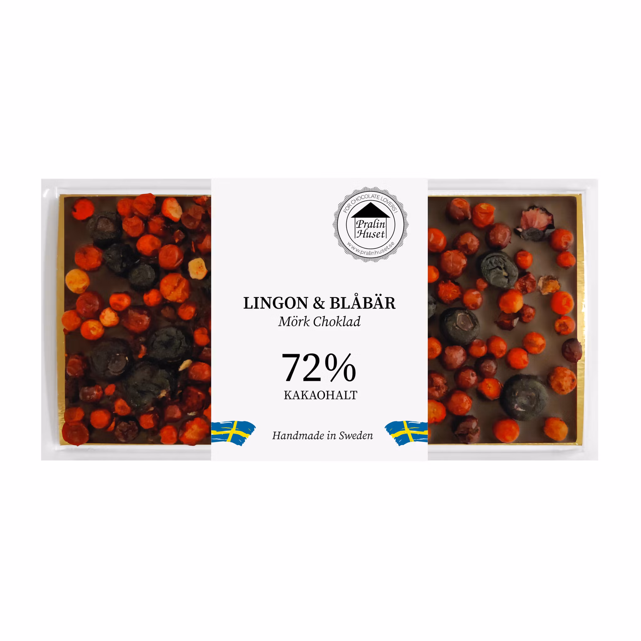 En kartong innehåller 10st chokladkakor. Pralinhusets egna 100 grams chokladkaka i mörk choklad.