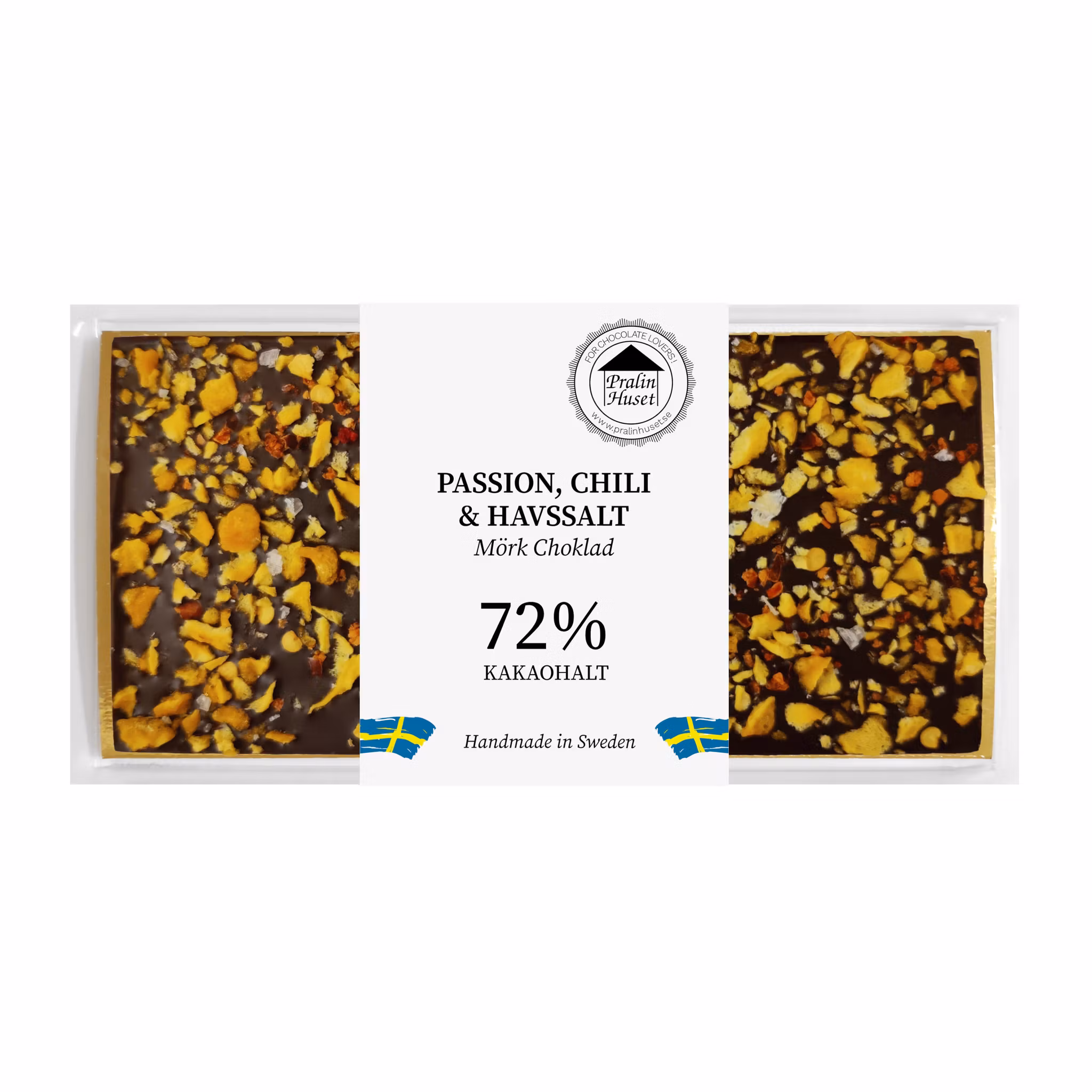 En kartong innehåller 10st chokladkakor. Pralinhusets egna 100 grams chokladkaka i mörk choklad.