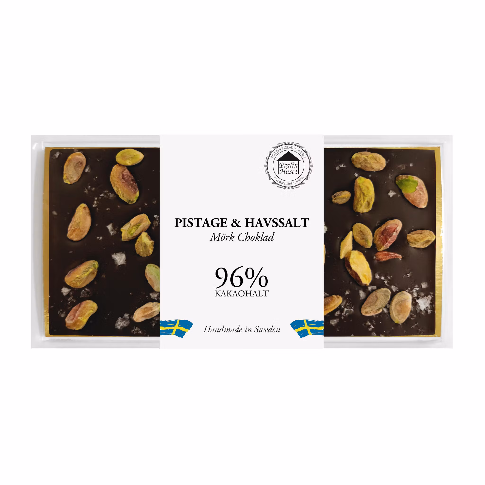 Ingredienser: Kakaomassa (>96 %), PISTAGE (11%), havssalt (1%). Kan innehålla spår av nötter (hasselnöt, cashew, mandel, valnöt) och kan innehålla upp till 4 % socker.