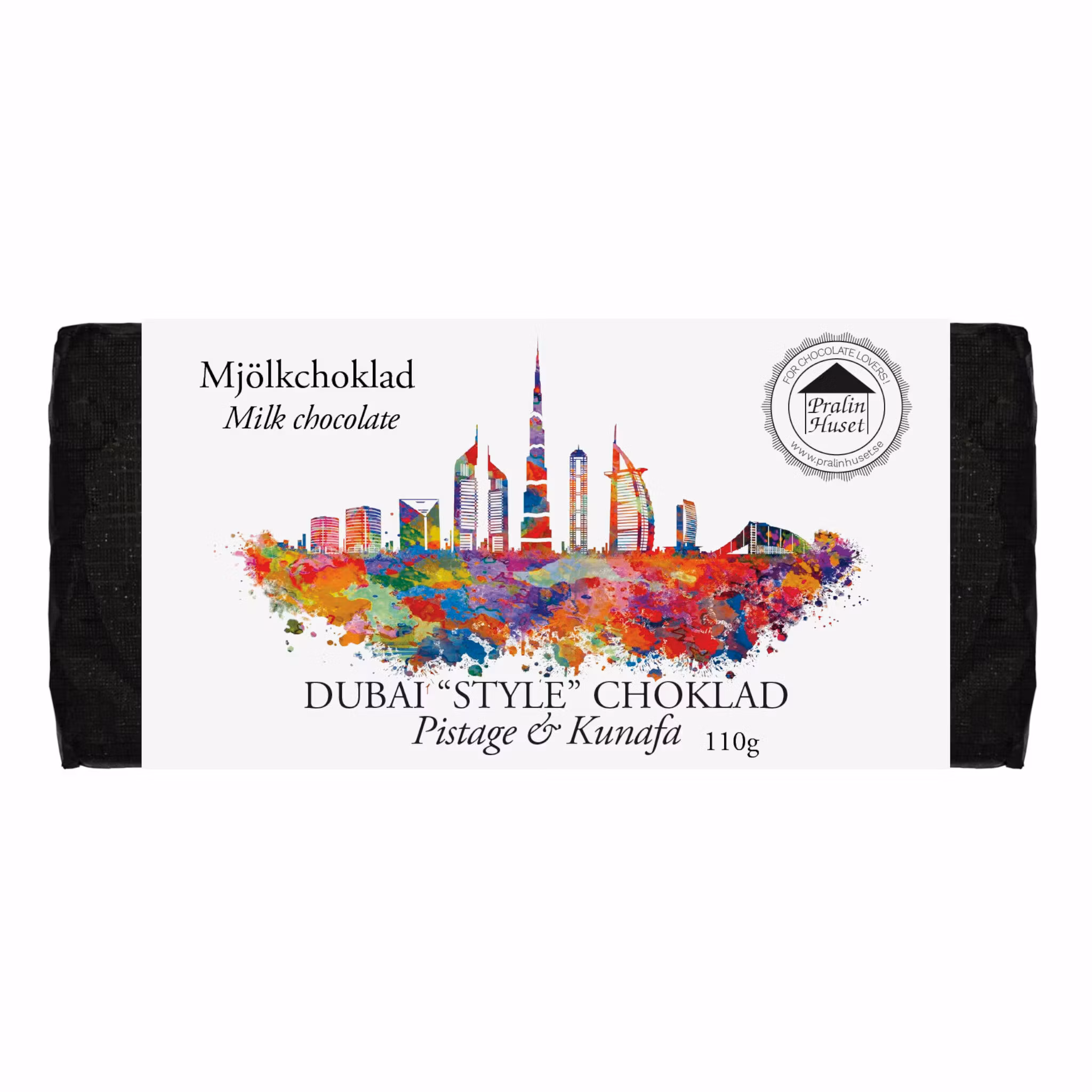 Chokladkaka i 34% kakao med fyllning av rostad pistagekräm blandad med krispig kunafa deg. Vikt: 110 gram