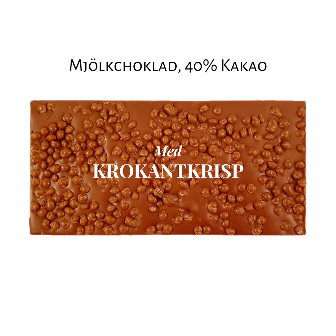 En kartong innehåller 10st chokladkakor. Pralinhusets egna 100 grams chokladkaka i ljus choklad (40% kakao) med Krokantkrisp.
