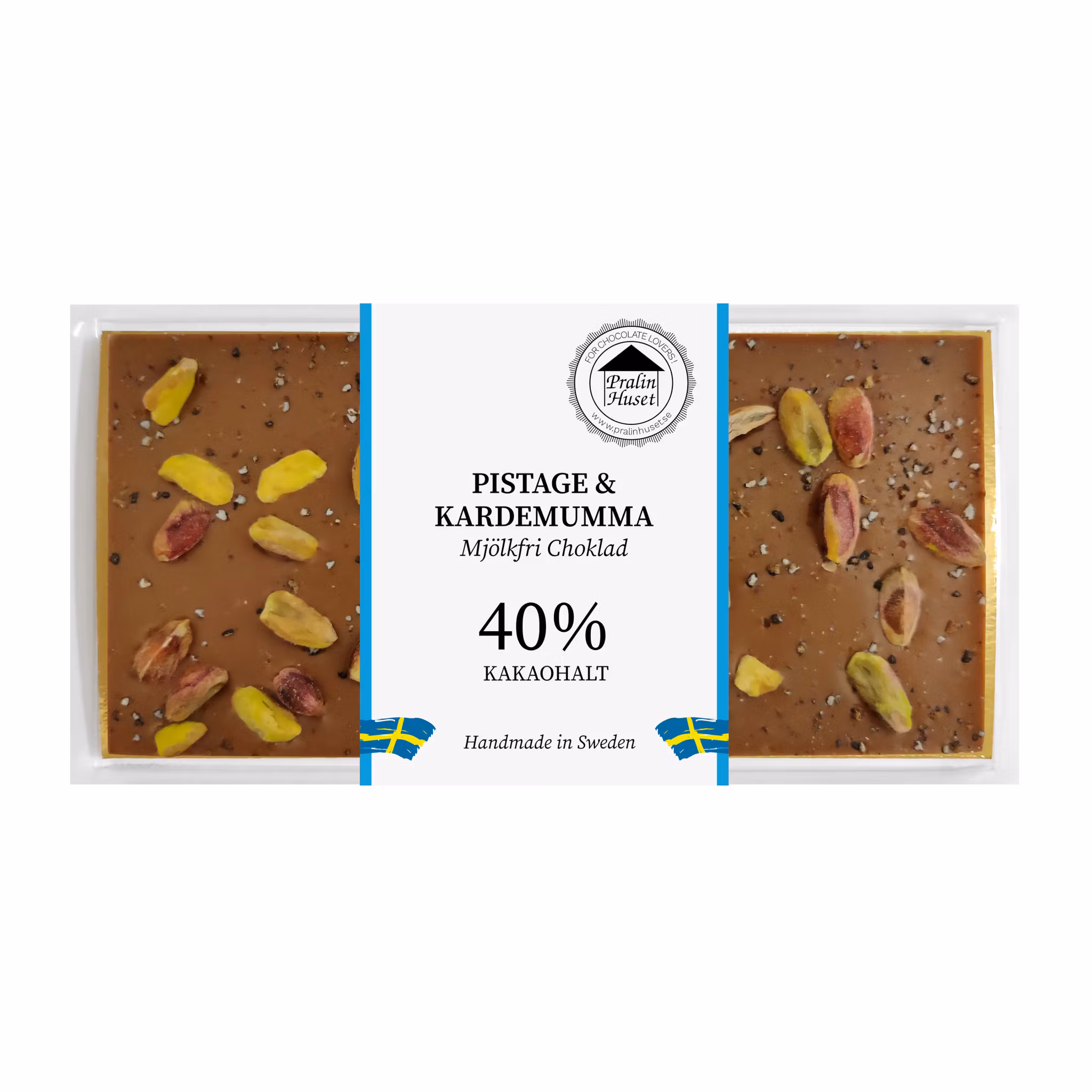 (Art nr. 09070) 5 x Mjölkfri 40% Choklad - Pistage & Kardemumma 100g