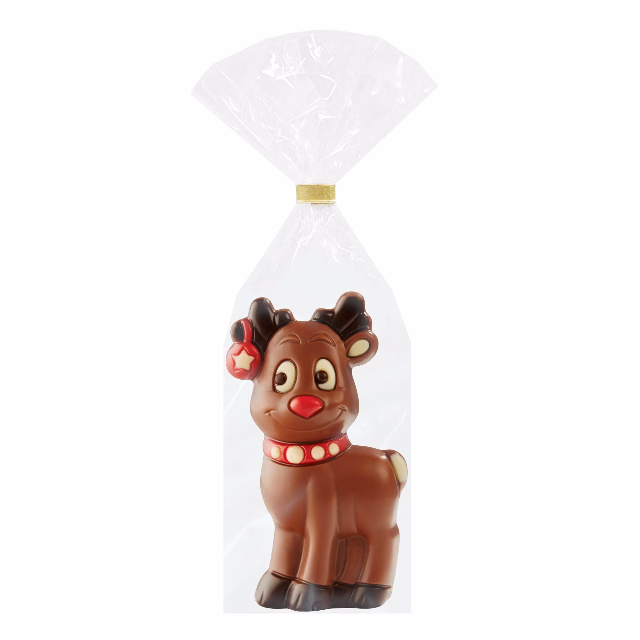 En kartong innehåller 10st figurer. Chokladmotiv i form av en ren som är dekorerade med vit och mörk choklad, samt dekorationsfärg. Choklad med min 36% kakao.