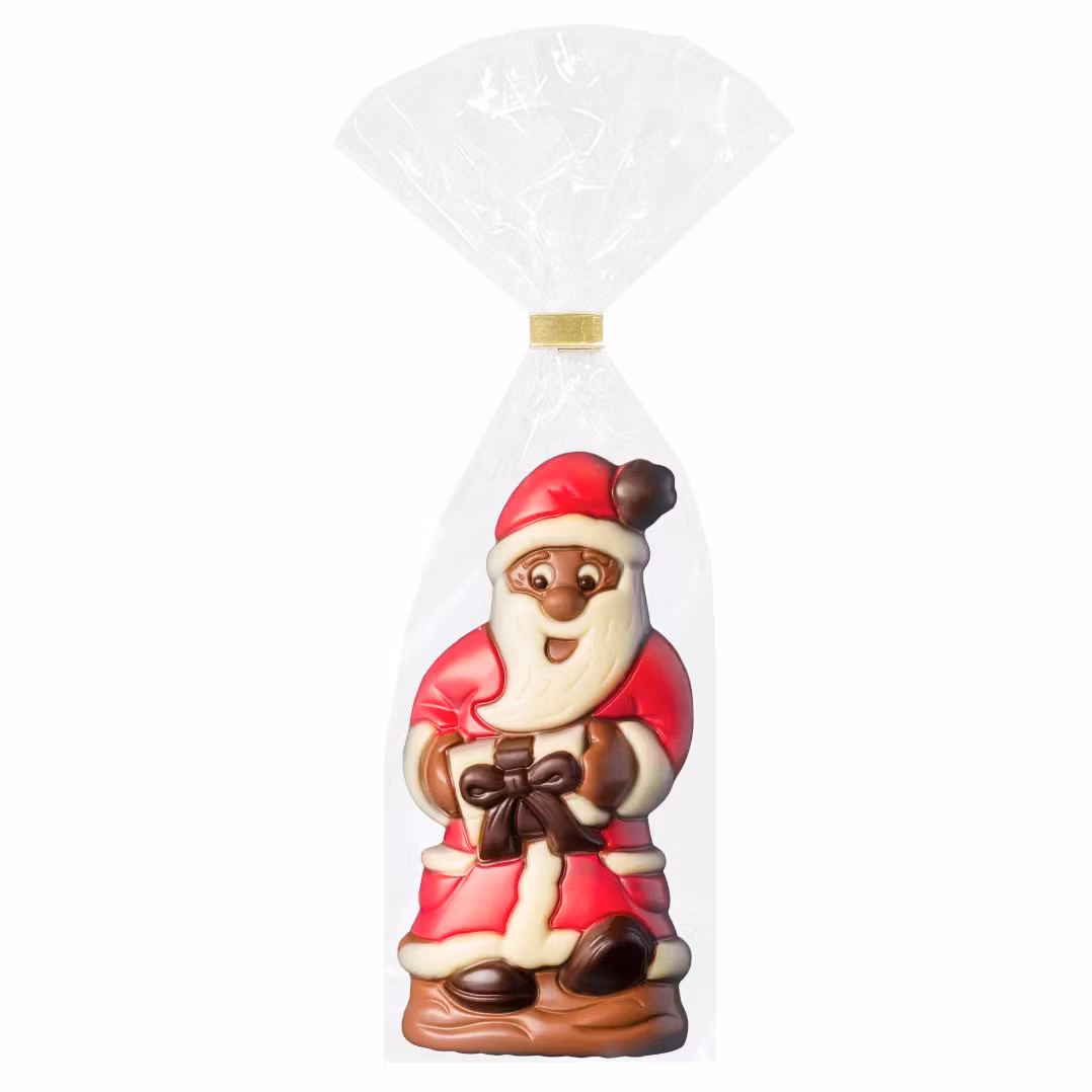 Förbeställning med leverans i September/Oktober. En kartong innehåller 8st figurer. Chokladmotiv i form av en tomte som är dekorerade med vit och mörk choklad, samt dekorationsfärg. Choklad med min 36% kakao.